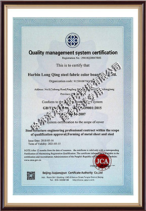 龍慶鋼構(gòu)彩板有限公司 目前擁有鋼結(jié)構(gòu)制造一級(jí)、鋼結(jié)構(gòu)承包一級(jí)、施工總承包二級(jí)、ISO9001質(zhì)量體系認(rèn)證、信用等級(jí)AAA級(jí)企業(yè)。公司總占地30萬(wàn)平米,在職員工1000余人,同時(shí)擁有重鋼、輕鋼生產(chǎn)基地5個(gè),年產(chǎn)值20萬(wàn)噸。主要涉及有:鋼結(jié)構(gòu)系列、彩鋼壓型板系列、彩鋼夾芯板系列、組合樓板系列等工程配套產(chǎn)品。廣泛應(yīng)用于:工業(yè)廠房、體育場(chǎng)館、高鐵站房、機(jī)場(chǎng)航站樓、超高層、畜牧行業(yè)、乳品行業(yè)、倉(cāng)儲(chǔ)冷鏈物流、石油化工、醫(yī)藥、食品加工行業(yè)、橋梁、物流等等。